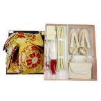 七五三 帯 はこせこ 7点 セット 結び帯 7歳 七歳 結び帯 付け帯 御祝帯 作り帯 染帯 ハコセコ 箱迫 草履 バッグ 金地 雪輪 八重桜