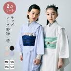 キッズ レース着物 兵児帯 2点 セット たゆたふセレクト 子供 レース 110cm 120cm 130cm 140cm 洗える着物 カジュアル 女の子 帯 白 黒 ブルー ピンク おしゃれ