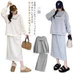 プルオーバー スカート セットアップ マタニティ 春秋 トレーナー カットソーセットアップ風ワンピース 産後 授乳服 オフィス 通勤 お出かけ カジュ