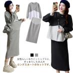 プルオーバー スカート セットアップ マタニティ 春秋 カットソーセットアップ風ワンピース 産後 授乳服 オフィス 通勤 お出かけ 長袖 カジュアル