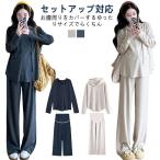 スウェット トレーナ 春 長袖 マタニティ パーカー ズボン レディース 上下セット プルオーバー 授乳服 長ズボン ワイドパンツ セット 妊婦 ウエ