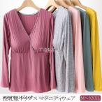 マタニティウエア リブ カットソー プルオーバー 授乳服 Tシャツ 授乳口付トップス インナー 秋 春 リブ Vネック 授乳口付き 薄手 長袖 おしゃ