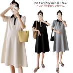 マタニティ ワンピース 半袖 授乳服 春 夏 妊婦服 ポロ ワンピース カジュアル マタニティウェア Tシャツ ワンピ ミモレ丈 ひざ下 ポロシャツ
