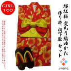 子供浴衣セット 100cm前後 3-4才 女児 浴衣 作り帯 下駄 18.0cm 3点セット 赤色 ひまわり