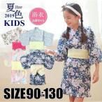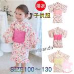 浴衣セット キッズ プチプラ 子供浴衣 2点セット 女の子 浴衣 兵児帯 帯 セット 花柄 ひまわり ストライプ おしゃれ 着付け 簡単 子供 小学生 ジュニア