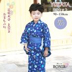 浴衣 子供 キッズ 3点セット (浴衣+兵児帯+下駄) 創美苑オリジナル bonheur saisons 濃紺色 ネイビー 黄色 向日葵 花柄 トンボ 綿 女の子 110 120 130