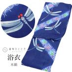 リサイクル 浴衣 単品 木綿 レディース 身丈161.5cm L 裄64.5cm 紺色系 トンボ文様 コーマ地 注染染め 紬 uu0820b
