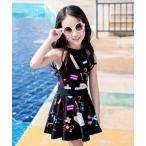 水着 アソートプリント柄ワンピース風スイムウェア 上下2点セット キッズ水着 キッズ 子供 女の子