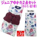 kimonocafe ハイジュニア 女の子 浴衣 帯 2点セット 浴衣セット 紫陽花 つばき 朝顔 百合 花柄 ネイビー ブルー パープル ピンク 130cm 140cm 150cm 低学年 高学年 浴衣・着物