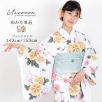 【2点セット】 ゆかた サイズ130 こども 白地 朝顔柄 作り帯 結び帯 浴衣 女の子 130cm ジュニアサイズ 子供 古典柄 ホワイト あさがお 小学生 9才から10才用