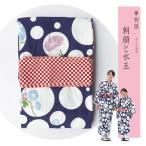 浴衣 子供 女の子 セット 浴衣 兵児帯 2点セット 紺 ネイビー 水色 紫陽花 朝顔 さくら 着物 (翌日配送対象) (ゆうパック)