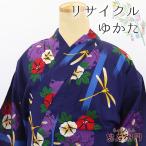 中古 子ども浴衣 ゆかた 子供 ガールズ 子ども 綿・コットン 青紺 朝顔 身丈141cm 裄丈59cm 花火 夏祭り 納涼祭 キッズ リサイクル着物 即日発送