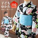 [ 110cm対応 ] 5-6才向け 仕立て上がり こども 浴衣 セット 朝顔に桜 黒 ゆかた へこ帯 2点 綿100% コットン 夏祭り 花火 大会 子供 女の子 女子