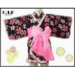 浴衣 女の子 E.T.K 日本製 キラキラ桜柄セパレートサンドレス浴衣3点セット ブラック 80cm 90cm 95cm 100cm 110cm 120cm