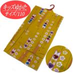 ゆかた こども 110cm イエロー系 矢羽に桜 古典柄 浴衣 女の子 5才から6才用 大三つ身 子供 綿 キッズ かわいい 子供浴衣 レトロ 110cm前後