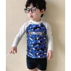 水着 キッズ水着 長袖バイカラー海のいきものラッシュガードトップス+ショートパンツ+ショートパンツ 上下3点セット キッズ 子供 男の子