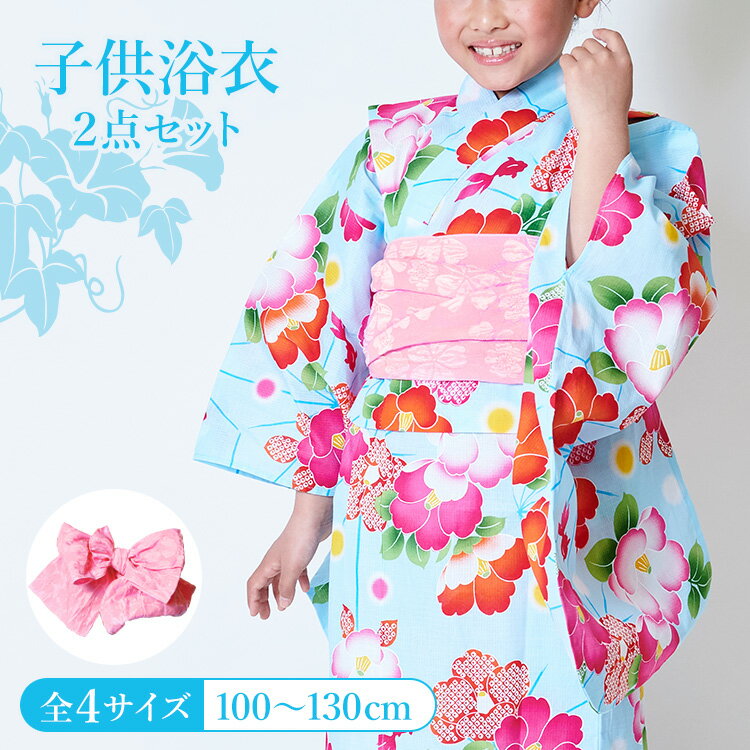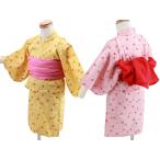 浴衣 子供 2点セット キッズ浴衣/全4色【送料0円】即納 ゆかた 子供 ジュニア キッズ 小学生 中学生 女の子 夏祭り 盆踊り 花柄 花火 ひまわり ピンク 金魚 レトロ モダン 帯 下駄 セット 子供浴衣セット 100cm 110cm 120cm 130cm