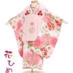 七五三 753 着物 3歳 被布セット 女の子 京都花ひめ まり2 白色の着物 ピンクの被布コート 刺繍入り 桜 まり フルセット 販売 購入
