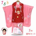 京都室町st. 七五三 着物 3歳 フルセット 女の子 本絞り柄・刺しゅう入り 被布コートと三つ身のセット 正絹「赤xピンク、花輪と鞠」IHFset829