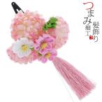七五三 髪飾り 3歳 花「 ピンク お花と房飾り」子供 つまみ細工 3歳 5歳 7歳 女の子 桃の節句にも (N378)<H>ss2506wkk10