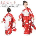 キッズ 着物 5点セット 七五三 7歳 3歳 5歳 着物セット 女の子 着物 四つ身 レッド 赤 鶴 七才 7歳 古典 レトロ 和装 女児 ひな祭り