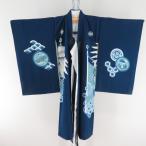 子供着物 男の子用 四つ身 襦袢セット 青色 鷹文様 正絹 5歳 5つ紋 フォーマルきもの 男児 七五三 祝着 身丈95cm