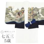【レンタル】七五三 5歳 レンタル 753 袴セット 男児 着物 「BY017 乙葉 【五歳】白×水色 鶴に宝船」男の子 着物 フルセット 男児 子供 きもの レンタル 羽織 袴セット 和装 5才 6才