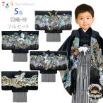 京都室町st. 七五三 5歳 男の子 フルセット 羽織 着物と縞袴のセット「黒地、えらべる4柄」NGThkmset
