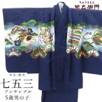 七五三 着物 男の子 男児袴セット 濃紺紋袴 3歳から5歳用 55cm 七点セット へら付き 収納箱付き