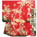 七五三 着物 7歳 正絹 女の子 四つ身着物 正絹手描き赤色地着物 華百選 金彩雲取 日本製