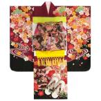 七五三 着物 7歳 着物フルセット 京都花ひめブランド 黒地総疋田着物 絵羽文様 紋意匠生地 金襴市松文様帯セット 足袋に腰紐など20点フルセット