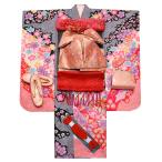 七五三着物7歳 着物フルセット 和がままブランド 小豆色地着物 枝垂れ桜 松竹梅 黒ちりめん友禅柄帯セット 足袋に腰紐など20点フルセット