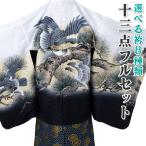 産着 お宮参り 着物 初着 男の子 黒 グレー 紺 クリーム 青緑 白 黄緑 水色 深緑 黒 青 兜 鷹 松 小槌 のし