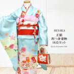 七五三 正絹 絹100% 着物 7歳 着物フルセット 浜ちりめん 手縫い仕立て 水色地着物 金襴有職文様桐生織小物セット 足袋に腰紐など20点セット 日本製