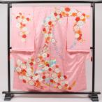 お宮参り 着物 女の子 絹100% 正絹 女児初着 ピンク地赤色斜染め分け 百花繚乱文様 手描き 手染め 純国産生糸使用 浜ちりめん生地 桐箱付き 日本製