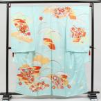 七五三 着物 7歳 正絹 購入 水色 地紙に鈴文 京友禅 四つ身 絵羽模様 振袖 女の子 手挿し型友禅