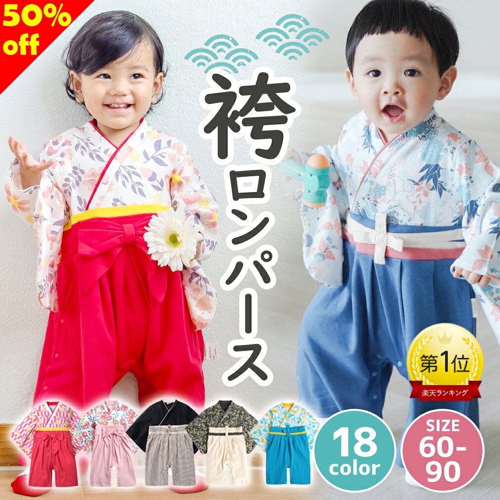 【スーパーSALE 50%OFF!】袴 ロンパース ベビーロンパース袴 女の子 男の子 ベビー 服 赤ちゃん 新生児 着物 衣装 100日祝い お食い初め 60 70 80 90 cm センチ ベビー袴 ベビー服 前開き 撮影 出産祝い