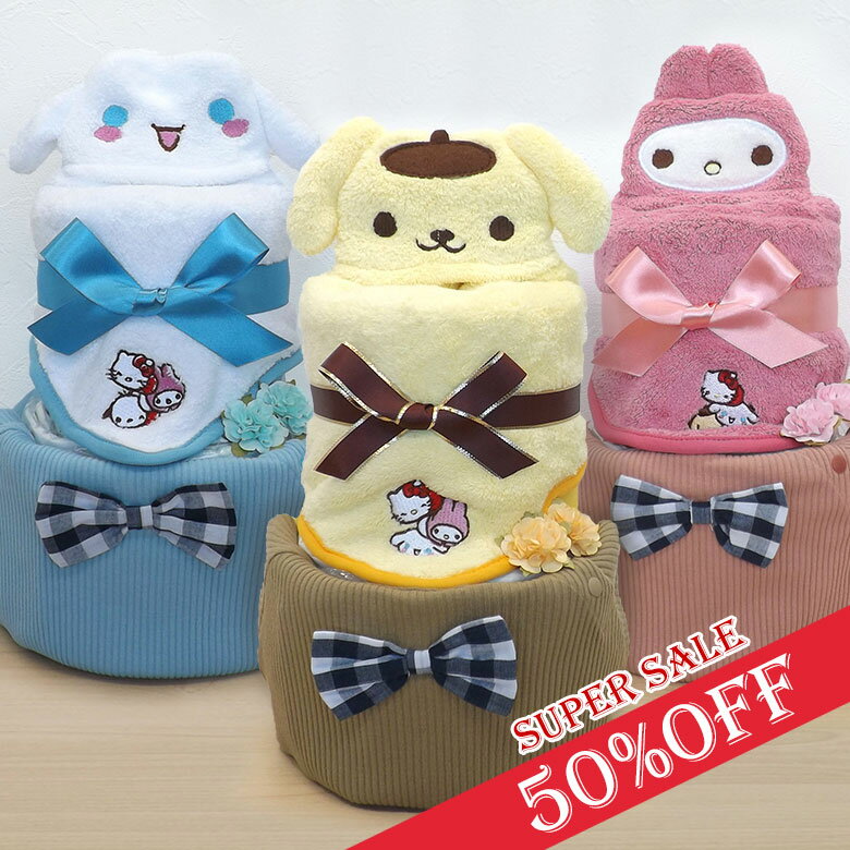【楽天スーパーSALE 50%OFF】おむつケーキ キャラクター 2段 紙おむつ マイクロループタオル ベビー服 出産祝い ポムポムプリン シナモロール マイメロディ プー エイリアン