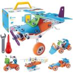 組み立ておもちゃ 工作キット 車 飛行機 おもちゃ 男の子 変形車 DIY 132ピース 立体パズル 知育玩具 誕生日 プレゼント 片付け 簡単 収納ボックス付き