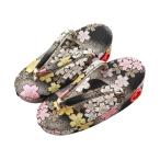七五三 帯地 子供用 きもの 草履 黒 桜柄 鈴付き 18cm sz-95-8