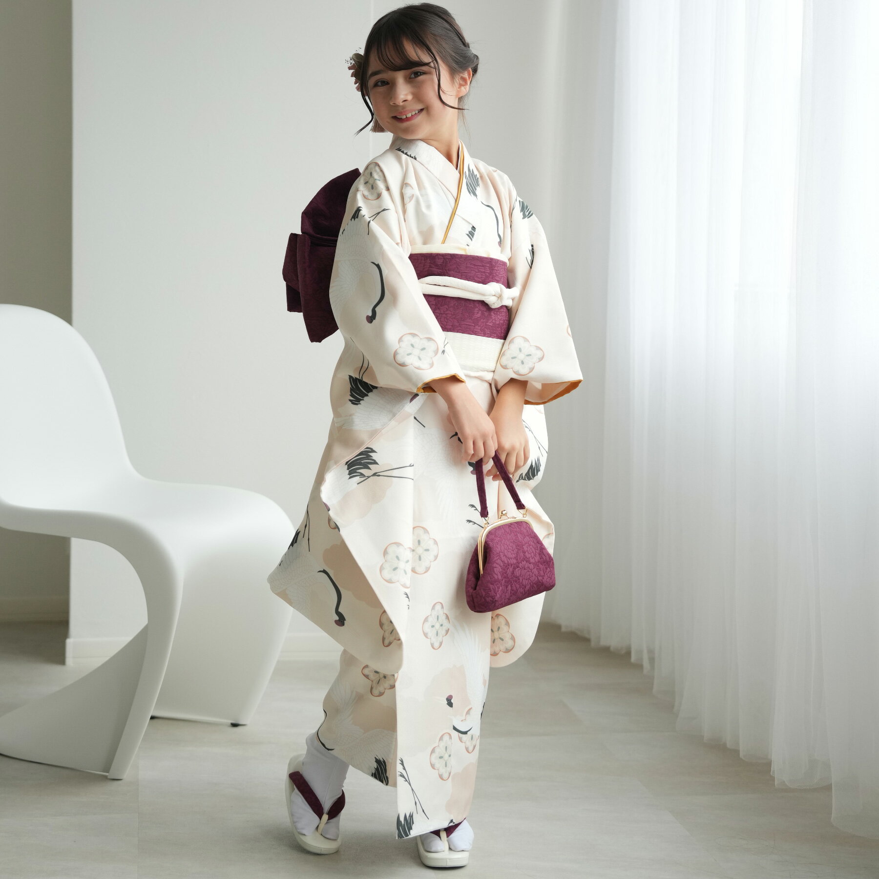 【40%OFF】【ひよこ商店 10歳 振袖セット 女の子 エクリュベージュ吉祥鶴】 ハーフ成人式 ジュニア 着物セット 販売 子供 kids 十歳 十才 女児 着物 1/2成人式 日本製作り帯 長襦袢 志古貴 草履 バッグ 足袋 135cm-145cm前後