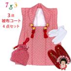 京都室町st. 七五三 三歳 女の子 被布セット 被布コート 草履 巾着 足袋 4点コーデセット「赤」AHFG-R-4set01
