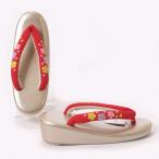 七五三 草履単品 7歳用 赤色 三色桜文様 桐生織生地 かかと一枚芯 大サイズ 日本製