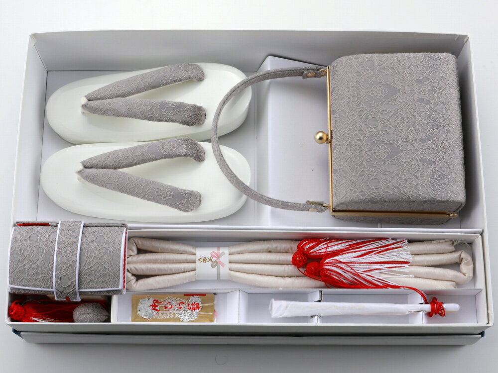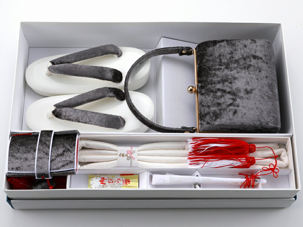 【30%OFF】七五三 七歳用 箱せこセット 化粧箱入り 6点セット 草履21cm グレー ベルベット調 ho-191【ss2512】