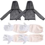 虫よけ ネット パーカー 服の上 顔まで フード 帽子 手袋 ネットパーカー2個+手袋2双