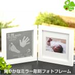 赤ちゃん 手形足形 ミラーフォトスタンド フォトフレーム ベビーフォト ミラースタンド ミラー 彫刻 【誕生祝 出産祝い 名入彫刻】