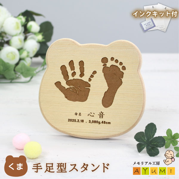 【17%OFF!! 12/4~ スーパーセール★】赤ちゃん 手形 足形 木製 スタンド くま オーダーメイド 日本製 インク キット付 おしゃれ 命名書 手型 足型 実寸大 名入れ 新生児 0歳 出産祝い 内祝い 記念 プレゼント キーホルダー【天使の足跡】(手足型スタンド・くま)
