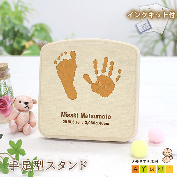 【全商品『10%OFF』クーポン配布中!! 12/1限定】赤ちゃん 手形 足形 木製 スタンド オーダーメイド 日本製 インク キット付 おしゃれ 命名書 手型 足型 実寸大 名入れ 新生児 0歳 出産祝い 内祝い 記念 プレゼント キーホルダー オリジナル【天使の足跡】(手足型スタンド)