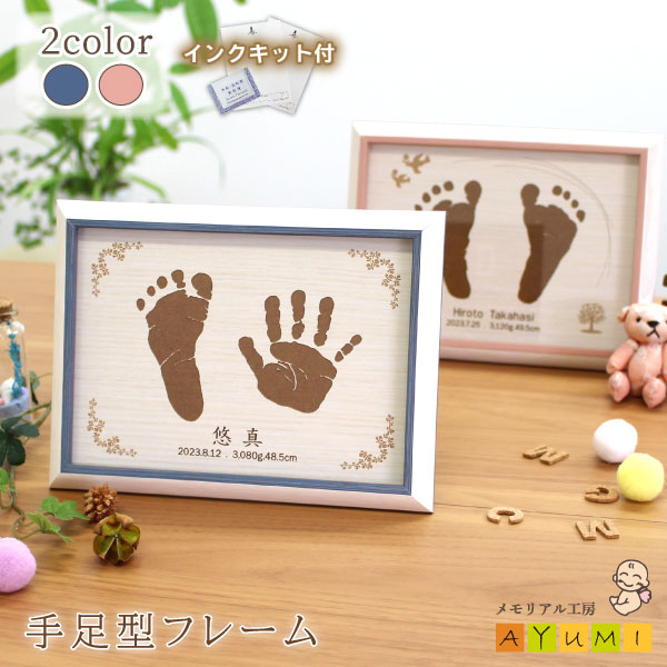 【全商品『10%OFF』クーポン配布中!! 12/1限定】赤ちゃん 手形 足形 フレーム インク キット付 日本製 オーダーメイド おしゃれ 命名書 手型 足型 実寸大 名入れ 新生児 0歳 記念 出産祝い 内祝い 両親 キーホルダー プレゼント オリジナル【天使の足跡】(手足型フレーム)