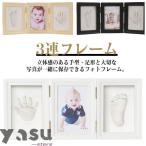 フォトスタンド 写真立て 3連フレーム バースデー祝い 手形 手形アート キット 足形 お誕生日祝い 粘土 新生児 赤ちゃん ベビー 記念品 メモリア